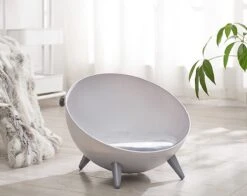 Katten en kitten let op! Hier is de ultimatieve designer-stoel. De ronde ligkom is uit wit transparant acryl gemaakt en er ligt een heerlijk kussen in, die bij de levering is inbegrepen. Deze verhoogde zitplaats wordt beslist direct de nieuwe lievelingsplaats van uw huisdier.