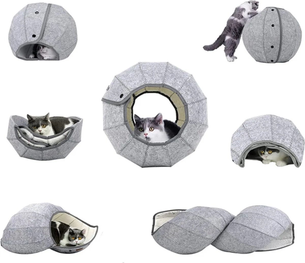 Hoogwaardig materiaal: ons kattentunnelbed is gemaakt van hoogwaardig vilt. Slijtvast, krasvast en onbreekbaar. Duurzaam, robuust en heeft een lange levensduur. Gevoerd met dons.