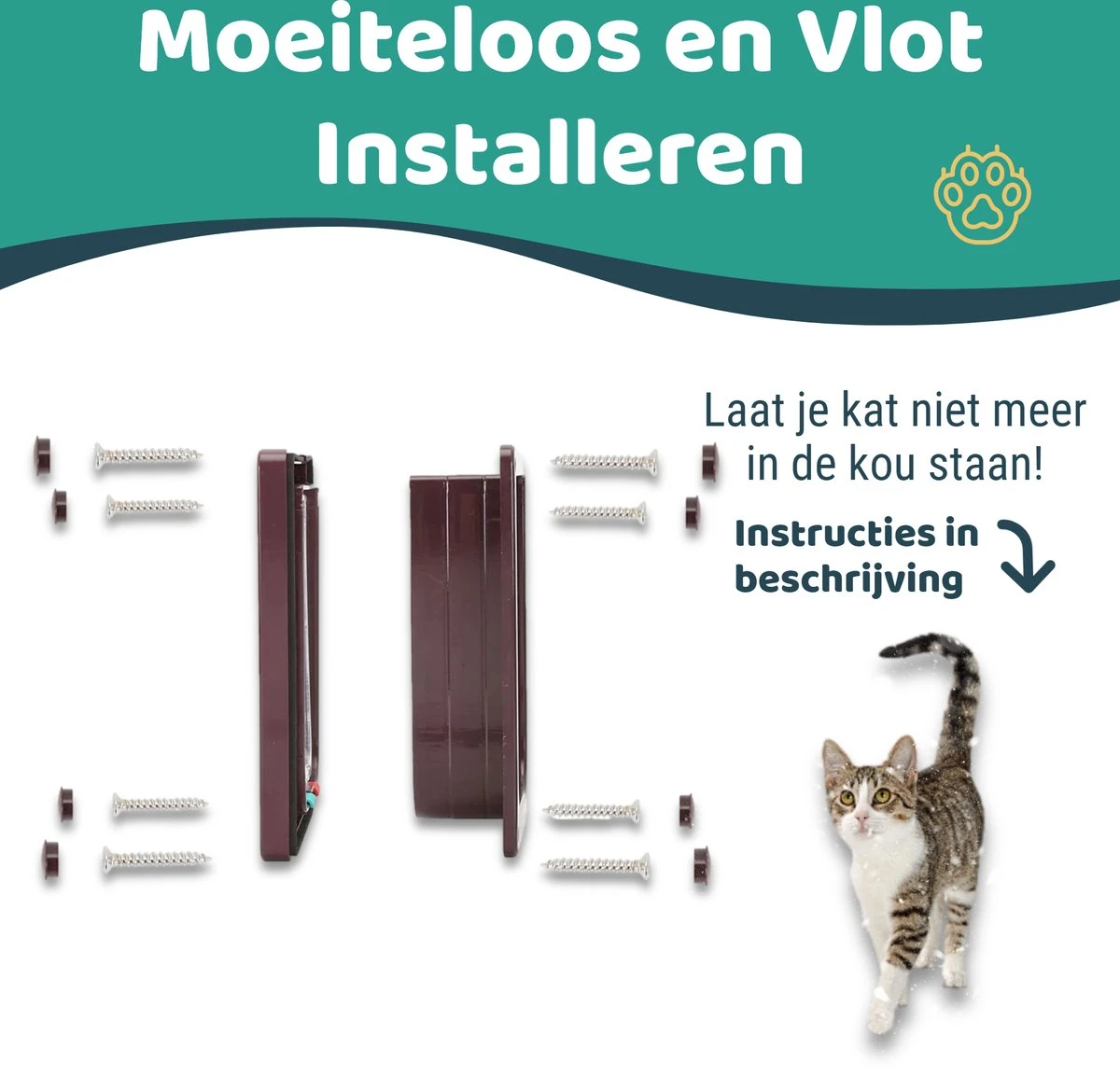 Met slechts 8 schroeven is je kattenluik in een mum van tijd geïnstalleerd. Enkele moeilijkheden? Neem de handige gebruiksaanwijzing erbij die je doorheen de installatie helpt.