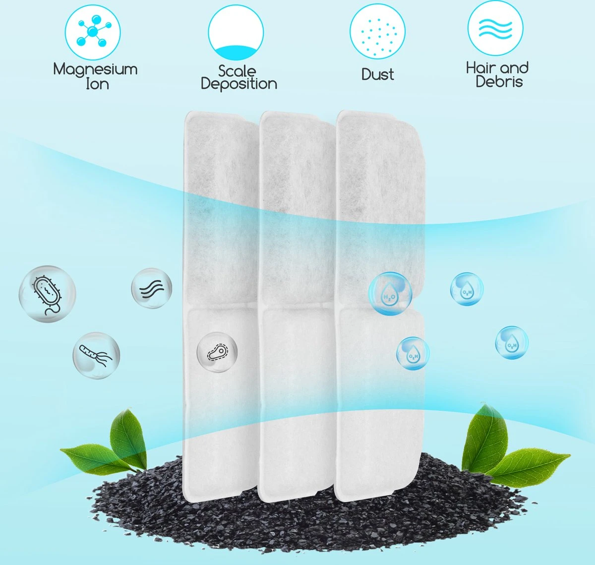 Het reservoir vul je met maximaal 2 liter water en verder hoef je niets te doen. Het filter is uiteraard te vervangen.