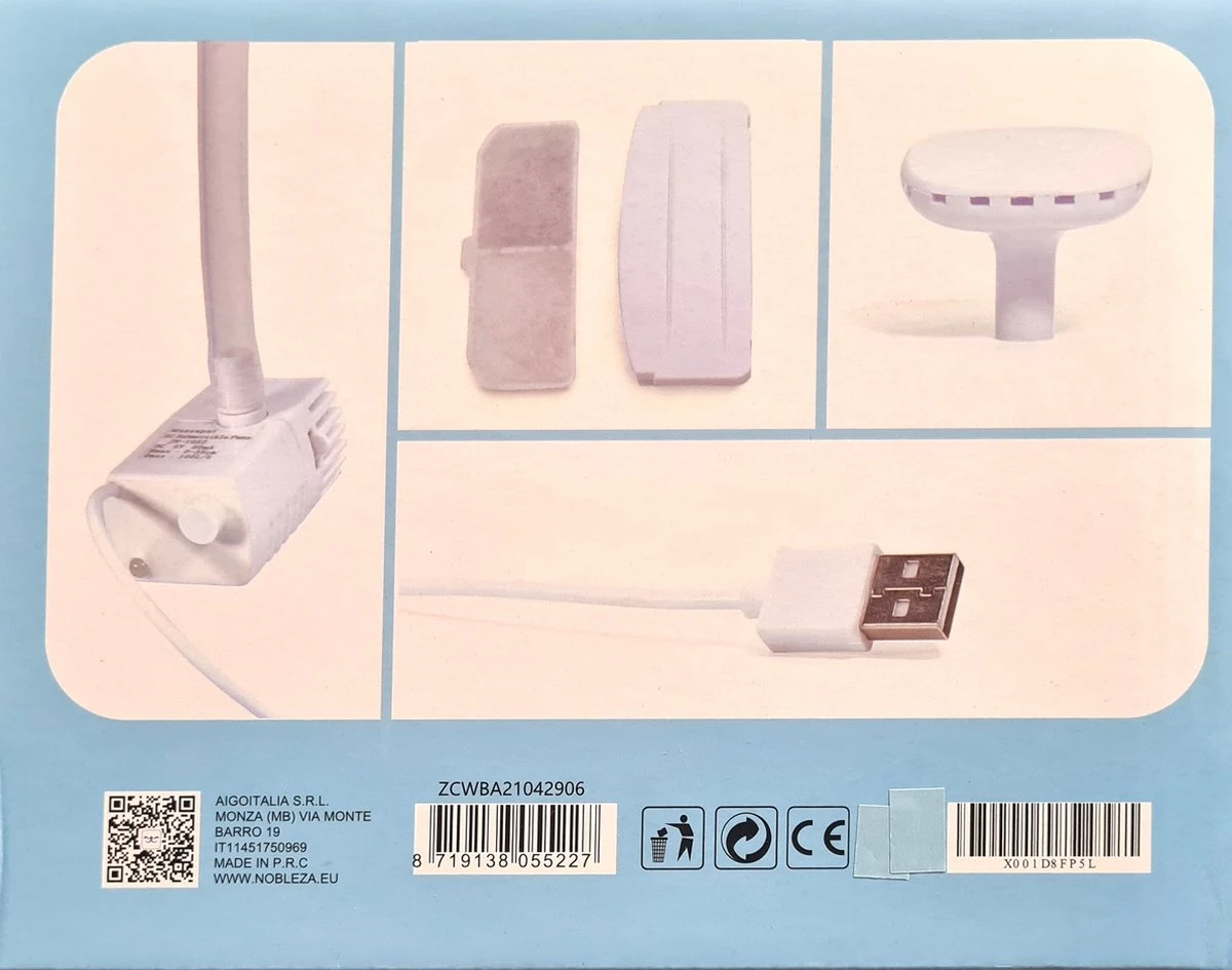 Voeding: USB aansluiting (past op iedere USB lader (product is niet oplaadbaar!))